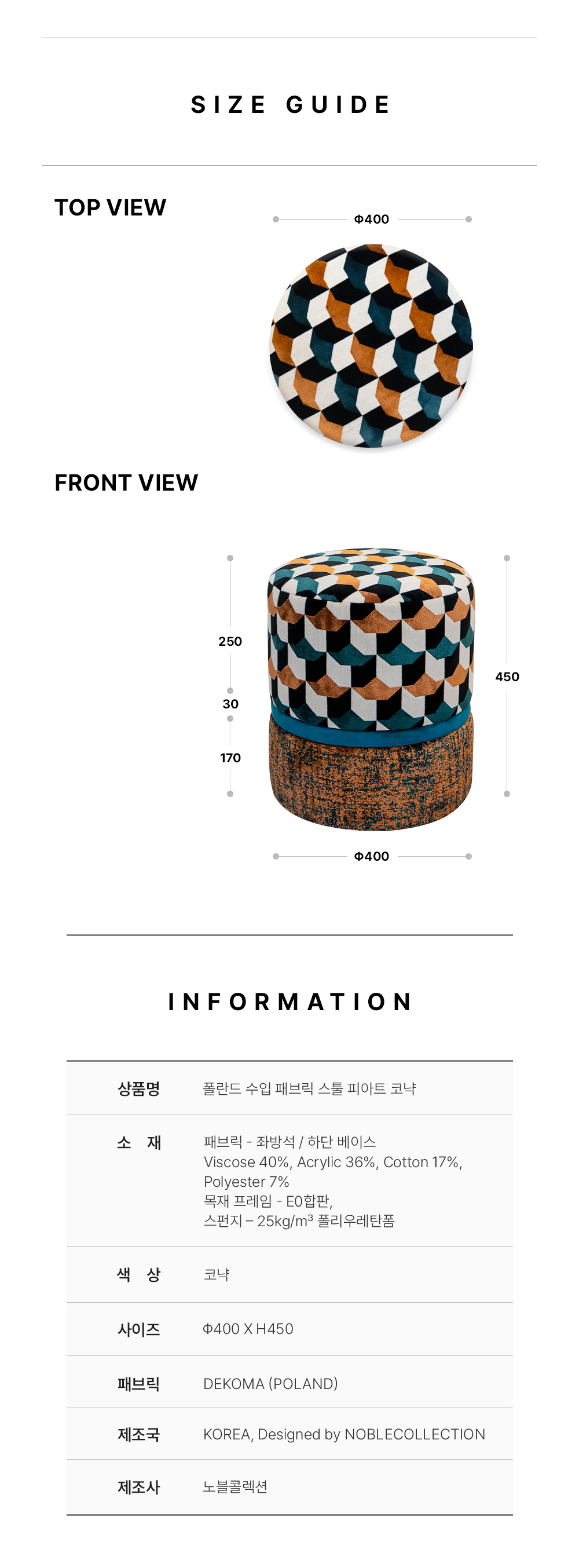 폴란드 수입 패브릭 스툴 피아트 코냑