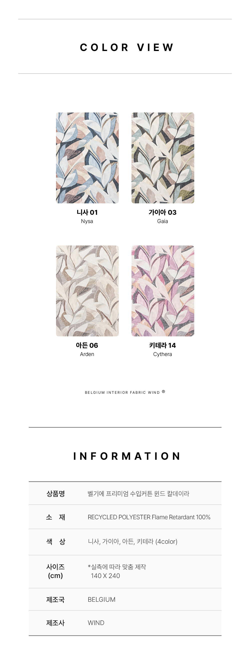 벨기에 프리미엄 수입커튼 윈드 칼데이라